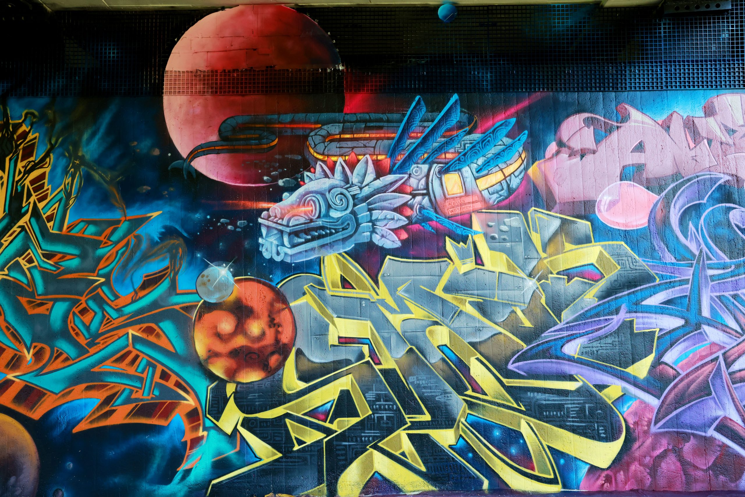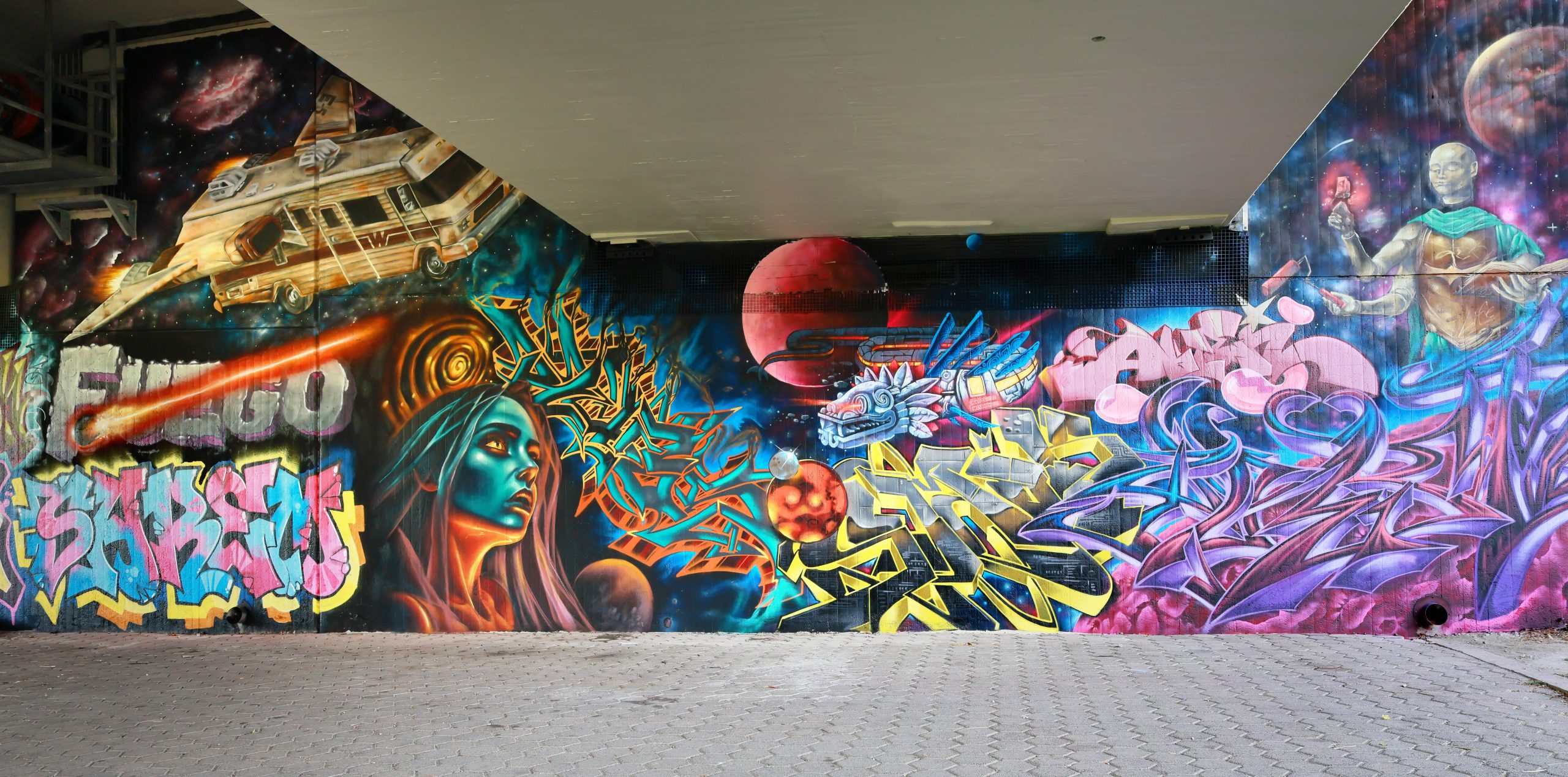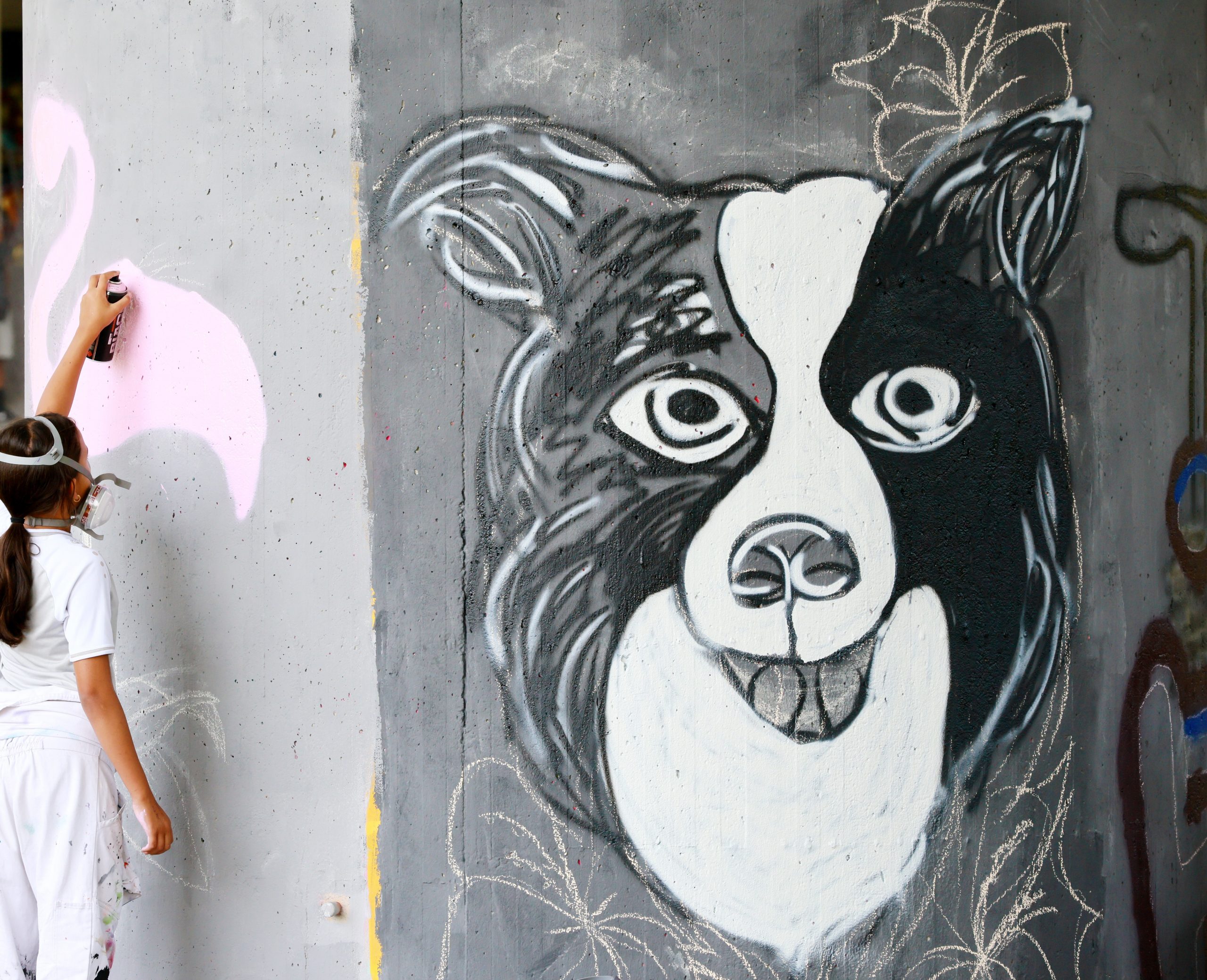 Jugendliche haben in Workshops unter der Brücke die Technik der Spraykunst erlernt und einen Einblick in die Lebensweisen von Profikünstler erhalten.